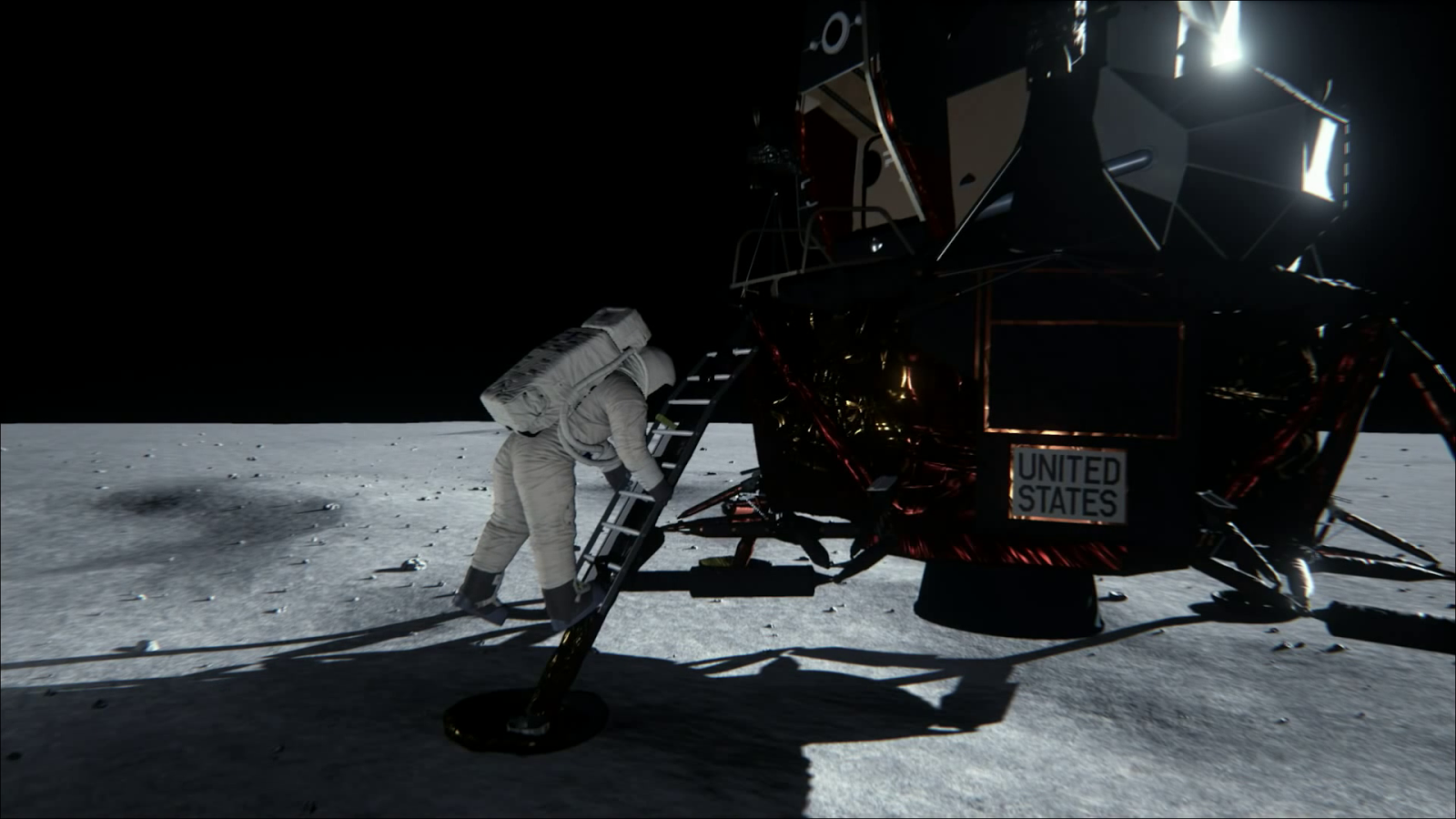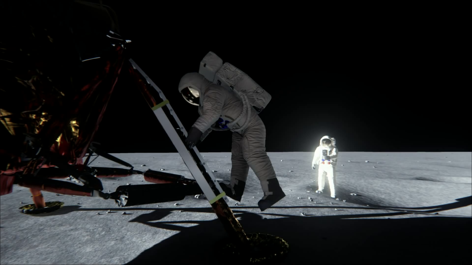 Nvidia ha deciso di dimostrare la potenza e la fedeltà di rendering delle proprie schede grafiche ricostruendo fedelmente la scena e soprattutto la riflettività della superficie lunare (nota grazie alle osservazioni telescopiche), dei rivestimenti del modulo lunare e della tuta di Aldrin.