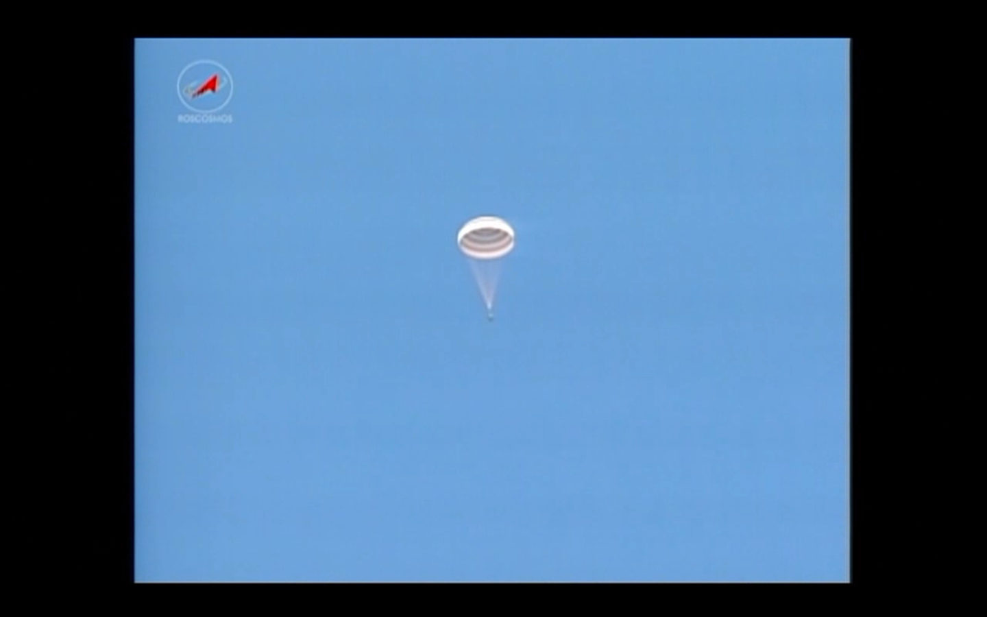 Intorno alle 2:55 ora italiana è avvenuta l'accensione di frenata, che è durata circa cinque minuti e si è conclusa regolarmente. Poi la Soyuz si è divisa nei suoi tre moduli e quello centrale, l'unico che rientra, ha proseguito la propria discesa fino al punto di atterraggio in Kazakistan, frenata dapprima dallo scudo termico e poi da un grande paracadute.