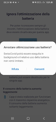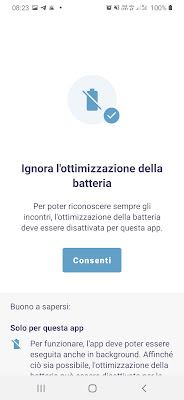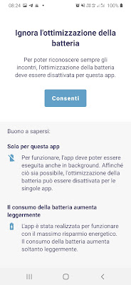 Poi viene chiesto di ignorare l’ottimizzazione della batteria in modo da consentire all’app di essere sempre attiva, anche quando è in background. Questo fa aumentare il consumo della batteria “soltanto leggermente”.