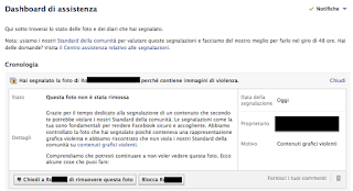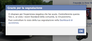 Nella schermata successiva ho scelto di segnalare la foto direttamente a Facebook, in modo che fossero i responsabili di Facebook a decidere cosa fare della foto.