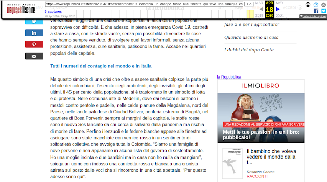 April 23, 2020 13:53Ultimo aggiornamento: 2020/04/23 18:40.Mentre raccoglievo dati e prove per questo mio articolo sul plagio effettuato da Repubblica ai danni di El País ho notato un fenomeno che mi ha spiazzato: le copie dei siti archiviate da Archive.org non sono permanenti.