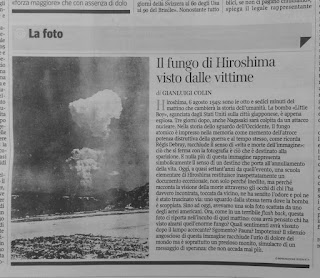 Il Corriere, come potete vedere qui accanto, dice (a firma di Gianluigi Colin) che si tratta di un “documento... inedito” e che “sino ad oggi, avevamo una solo foto scattata da uno degli aerei americani”. Repubblica la definisce una “foto inedita” e scrive che “Finora le foto del fungo atomico erano solo quelle prese dall'alto dall'esercito americano”. L'ANSA ribadisce che l'immagine è “inedita” e che è “la prima del suo genere ripresa dal suolo e a essere un originale. Oltre a questo esemplare, si conosceva soltanto un'altra foto aerea scattata dai militari americani.”