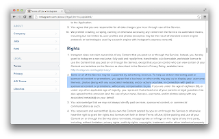 December 17, 2012 22:00 - no comments yet Usate Instagram? Allora leggete con attenzione le nuove condizioni di utilizzo: sono cambiate, e Instagram si è presa il diritto di vendere le vostre foto senza chiedervi il permesso e senza pagarvi.Secondo le nuove norme, che entreranno in vigore dal 16 gennaio prossimo, “you agree that a business or other entity may pay us to display your username, likeness, photos (along with any associated metadata), and/or actions you take, in connection with paid or sponsored content or promotions, without any compensation to you.”