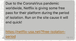 Sta circolando in varie lingue e soprattutto tramite il passaparola su Whatsapp un messaggio che annuncia che Netflix ha deciso di dare accesso gratuito alla propria piattaforma durante il periodo di isolamento dovuto al coronavirus.