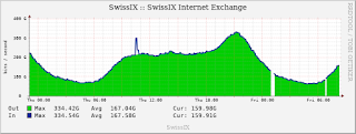 Un modo per rilevare l’andamento del traffico Internet in Svizzera è monitorare Swissix, il più grande Internet Exchange Point (punto di interscambio fra fornitori) della Svizzera. I suoi dati indicano un picco di circa 320 gigabit/secondo fra le 20 e le 22. Il momento di traffico minore è da mezzanotte alle sette del mattino. Se dovete scaricare grandi file, cercate di farlo quando c’è poco traffico.
