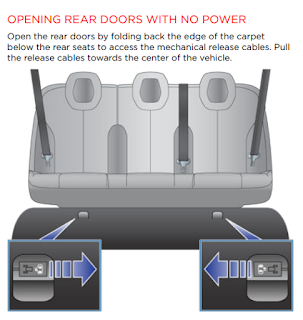 | Sblocco d’emergenza delle portiere dall’interno nelle Tesla Model S. |