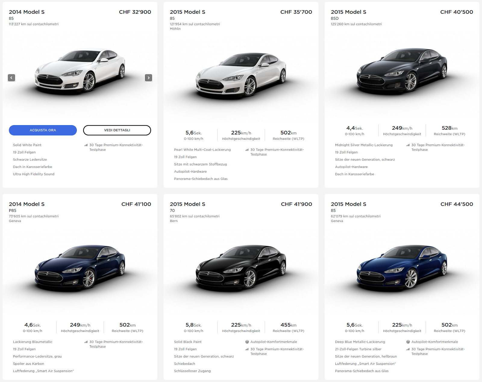 In teoria potrei anche fare quello che ho fatto con la mia prima auto elettrica: comprarne una usata. Ci sono delle Tesla Model S del 2014 e 2015 da 32.900 a 44.900 CHF che rientrerebbero comodamente nel mio budget. Ma la Model S è immensa: ideale per i grandi viaggi, con un bagagliaio enorme, ma difficile da parcheggiare una volta arrivati a destinazione. Ho guidato per anni un’auto da cinque metri e so quanto si tribola. E poi avrebbe pochi anni di garanzia residua sulla batteria: un rischio che posso permettermi di correre con il prezzo di un’automobilina come la mia attuale Peugeot iOn, ma non con quello di una Model S. In più resterebbero sempre i problemi della seduta molto bassa e dell’abitabilità posteriore molto modesta.