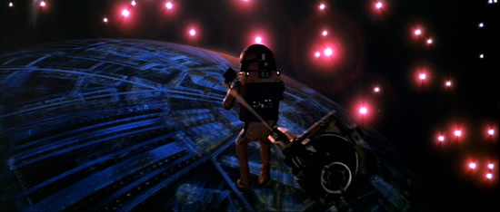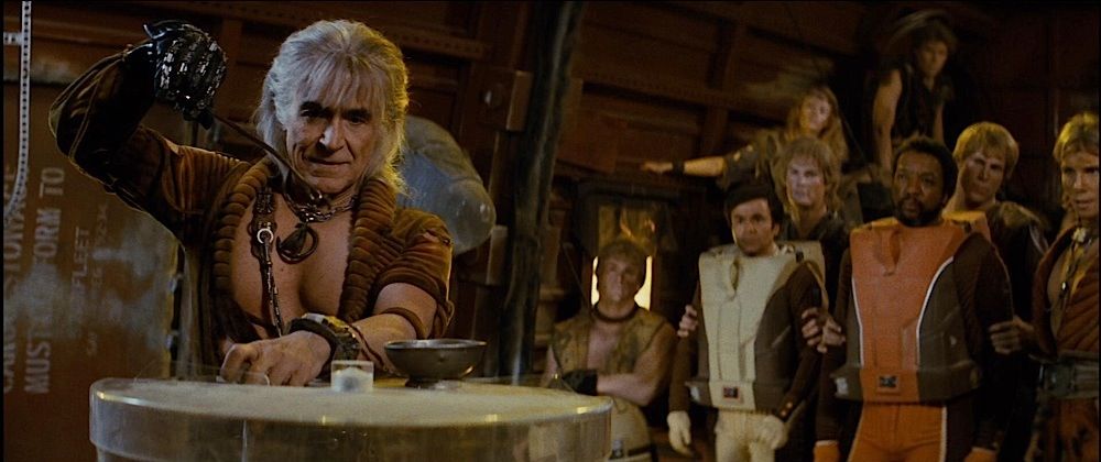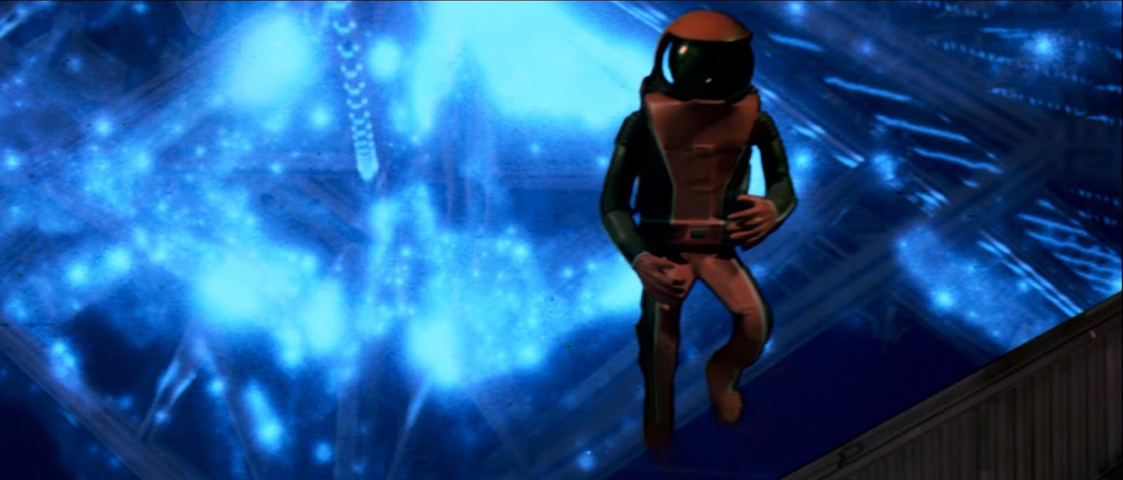 Alcuni solutori hanno detto che era la tuta usata nel secondo film, ossia Star Trek: L’Ira di Khan, ma hanno ragione solo in parte. Infatti la tuta del primo film fu effettivamente riutilizzata per il secondo, ma nella foto pubblicata dal Corriere manca la maniglia pettorale che c’è nel secondo film, come si vede qui sotto: