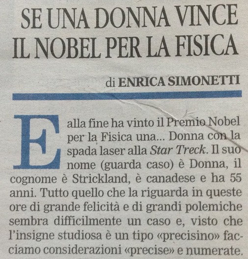 octubre 3, 2018 6:10“Facciamo considerazioni 'precise'”, scrive Enrica Simonetti sulla Gazzetta del Mezzogiorno oggi. Dopo aver scritto che ci sono le spade laser in “Star TRECK”. Sì, con la C e la K. Lo scrive non sul sito, ma nella versione cartacea. Quella seria.Spiegone per giornalisti: