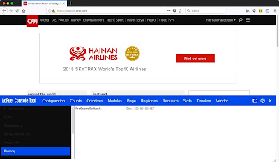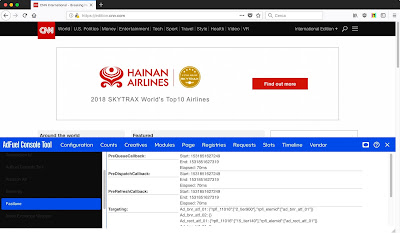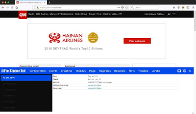 julio 17, 2018 16:09Una segnalazione curiosa di @AbeSnowman: se andate sul sito della CNN (Cnn.com), senza un adblocker attivo, e premete Ctrl-Shift-Z compare un bottone che permette di consultare le statistiche pubblicitarie.
