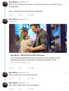 Si tratta, naturalmente, di raggiri: nessuno regala niente per niente, e chi manda criptovalute in risposta a questi annunci li sta in realtà mandando direttamente nei portafogli digitali dei truffatori. Ma nella massa dei milioni di seguaci di una celebrità ci sono sempre persone ingenue o vulnerabili che non si accorgono che i tweet sono falsi e credono ciecamente a qualunque dichiarazione apparentemente fatta dai propri personaggi preferiti, come racconta l’esperto di sicurezza Graham Cluley, che ne mostra altri esempi.