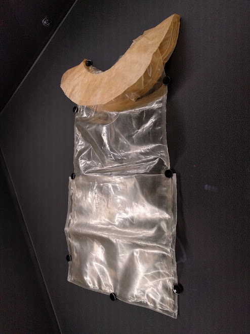 | Una fecal bag dell’epoca delle missioni Apollo. Foto mia presso la mostra A Human Adventure, Milano, febbraio 2018. |