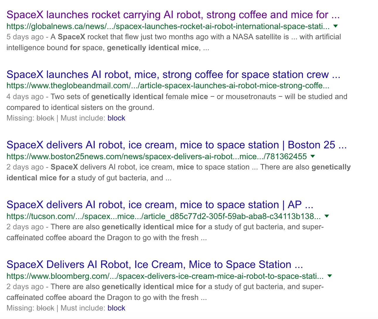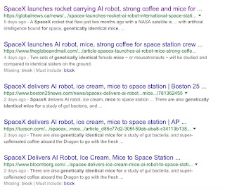 Gatti? Andando a controllare le notizie sul recente lancio di rifornimento della Stazione Spaziale Internazionale salta fuori che a bordo c’erano due topi. In inglese “topi” si dice “mice”. Sarà mica che...? No, dai.