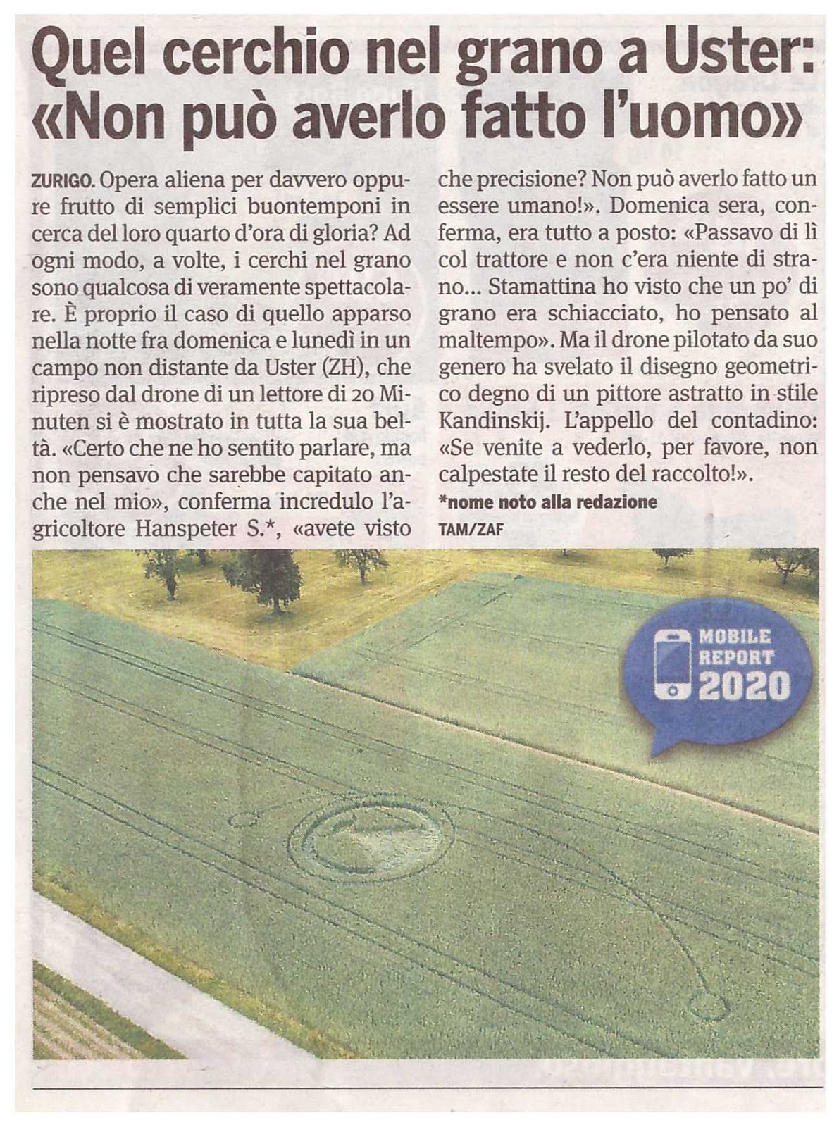 “Non può averlo fatto l’uomo”, titola Tio.ch. Ma in realtà si tratta di un bel “cerchio” piuttosto semplice da realizzare. Lo so, perché ne ho fatti anch’io, e anche di più complessi, sotto la guida di un maestro di questa arte, Francesco Grassi del CICAP.