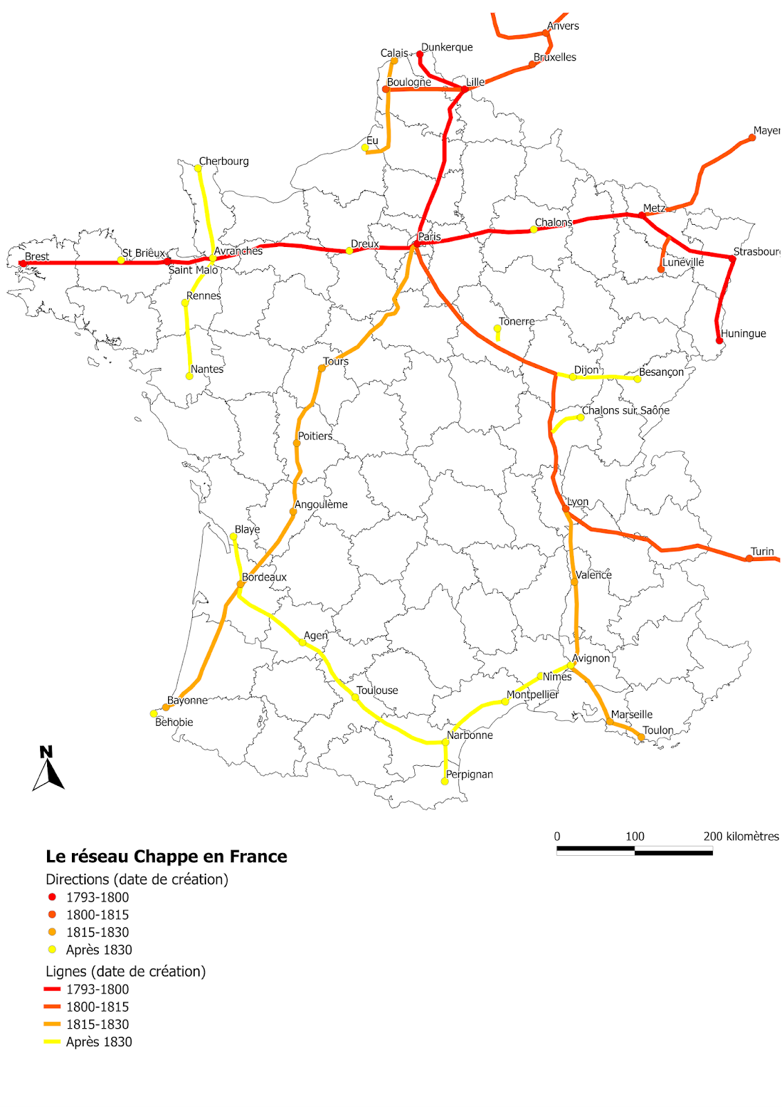 Con questo sistema i messaggi viaggiavano a circa 500 chilometri l’ora, coprendo per esempio la distanza fra Parigi e Lille (230 km) in una mezz’oretta, in un’epoca nella quale l’alternativa più celere, un corriere a cavallo, avrebbe impiegato almeno trenta ore. La Francia costruì una rete di 556 stazioni semaforiche che coprivano circa 4800 chilometri, e altri paesi europei realizzarono reti analoghe.