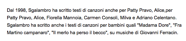 La storia che Sgalambro avrebbe scritto Fra Martino campanaro esiste solo in quella fugace apparizione in Wikipedia (e in questa, segnalata dal Giornale della Musica, apparsa sempre su Wikipedia). Nessun altro sito la riporta prima di ieri. Nessuno s'è fermato a chiedersi se era plausibile. Nessuno s'è fermato a verificarla (s'è salvato Avvenire).