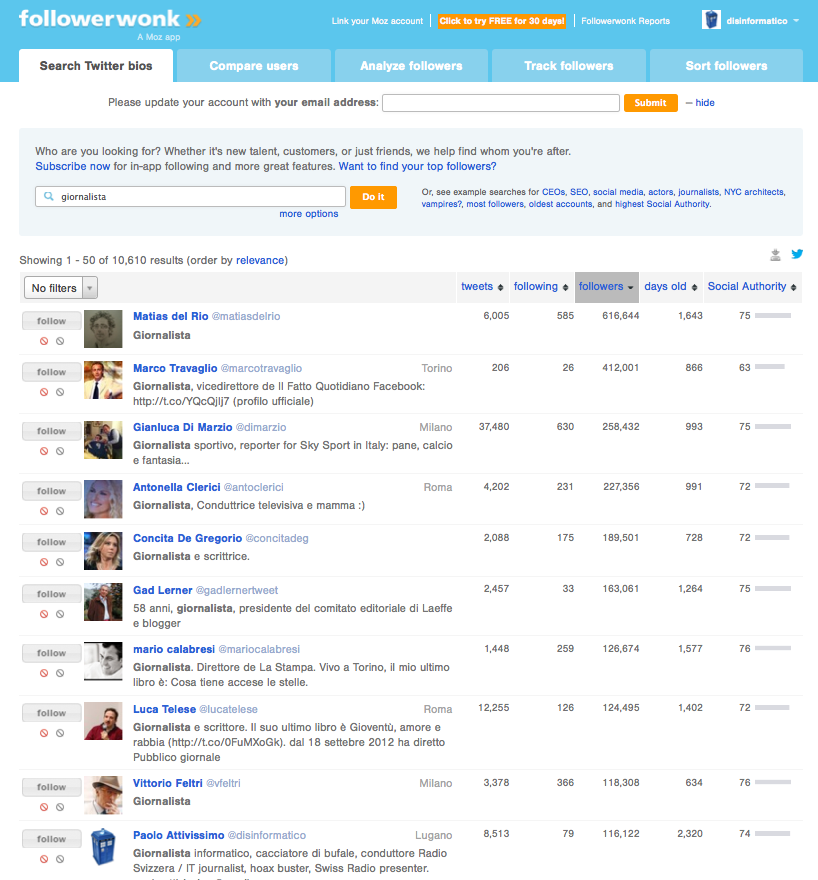Sapere tutto di un utente Twitter: FollowerWonk