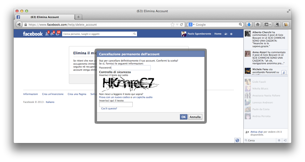 Ne ho abbastanza di perdere tempo a dis-iscrivermi a gruppi Facebook ai quali sono stato iscritto senza che me ne venisse chiesto il permesso; a ricevere e cancellare notifiche irrilevanti, nonostante un eroico sforzo di selezione degli amici; a respingere o selezionare richieste di amicizia di perfetti sconosciuti; a essere taggato nelle foto in cui non ci sono perché così chi mi ha taggato attira la mia attenzione sulla sua conversazione; a ricevere messaggi di chi mi scrive via Facebook invece di mandarmi più semplicemente e privatamente una mail. E comunque non ho tempo di perdermi in mille rivoli di conversazione; niente di personale, per carità, ma semplicemente ho poco tempo e devo scegliere con attenzione come spenderlo. Per cui oggi chiudo il mio account pubblico (Paolo Sgomberonte); manterrò quelli segreti che uso per i test.