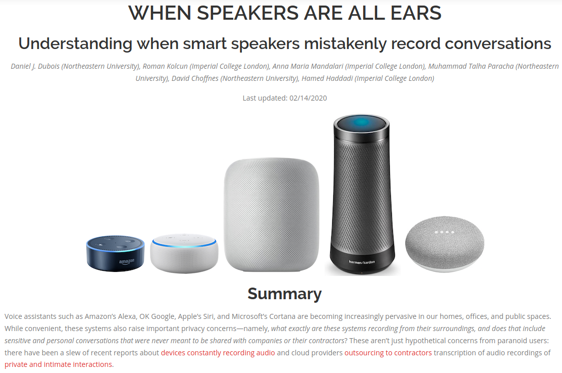 Le attivazioni non intenzionali capitano più spesso di quello che molti immaginano. Una ricerca della Northeastern University e dell’Imperial College di Londra indica che gli utenti attivano involontariamente i loro altoparlanti “smart” da una volta e mezza fino a 19 volte al giorno.