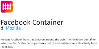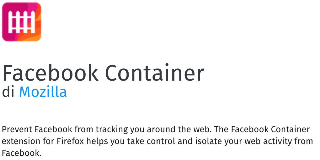 Maggiori dettagli su Facebook Container sono qui su Mozilla.org e in questo articolo di Graham Cluley.