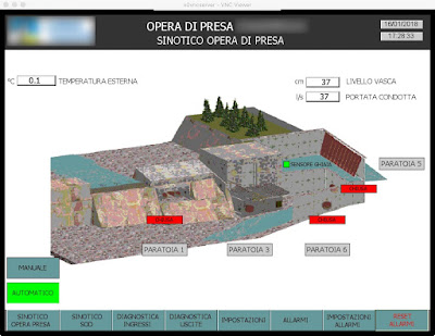Ieri ho trovato su Internet uno di questi apparati, accessibile senza alcuna password o protezione: era un sistema per la gestione di una cosiddetta “opera di presa”, una di quelle che preleva acqua da un fiume o un torrente. Ho avvisato telefonicamente e via mail i responsabili dell’impianto e la Polizia Postale del luogo, ma sono passate molte ore prima che qualcuno rimediasse alla falla di sicurezza aperta da chissà quanto tempo. Nel frattempo chiunque avrebbe potuto manovrare l’impianto e causare danni. E come questo impianto ce ne sono molti altri, in Italia e nel mondo.