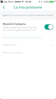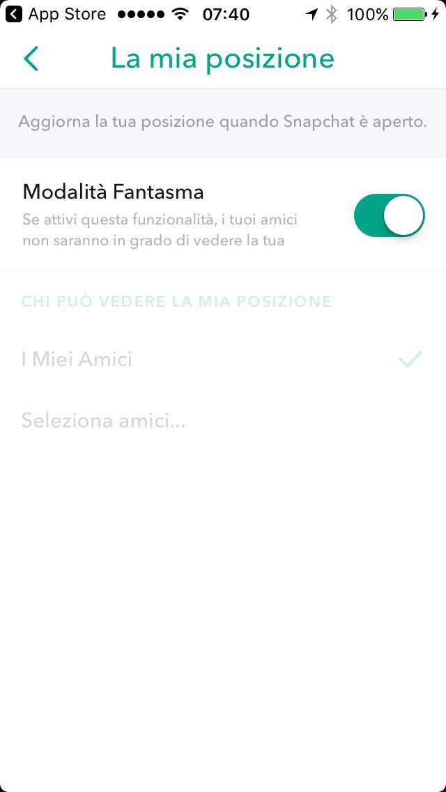 Conviene quindi correggere quest’impostazione: andate nelle impostazioni di Snapchat, trovate Mostra la mia posizione e attivate la Modalità fantasma. Potete anche essere più drastici, disattivando l’accesso di Snapchat alla geolocalizzazione nelle impostazioni dello smartphone: