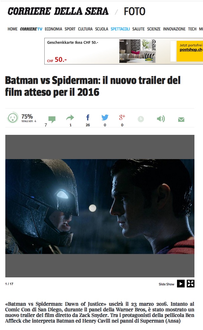 Il Corriere non sa distinguere Spider-Man da Superman: neanche con una fotografia davanti al naso
