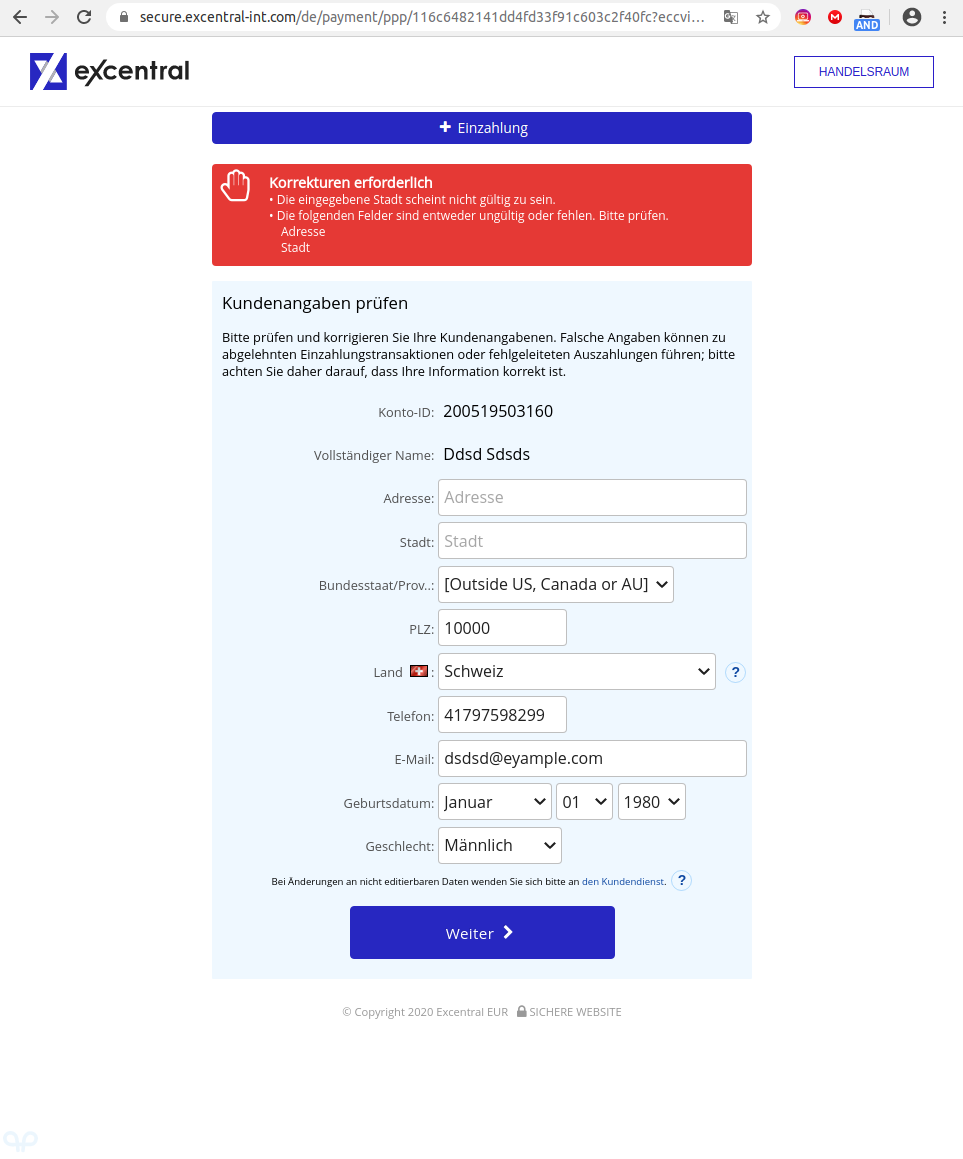 Zur Beachtung: Je nach Ihrer Bank könnte diese Transaktion als Bargeldauszahlung behandelt werden. Excentral EUR übernimmt keine Verantwortung für etwaige Bargeldauszahlungsgebühren in Zusammenhang mit dieser Transaktion. Die Transaktion wird auf Ihrer Kreditkartenabrechnung erscheinen als Excentral, falls auf Ihrer Transaktionsbestätigung nicht etwas anderes angegeben ist.