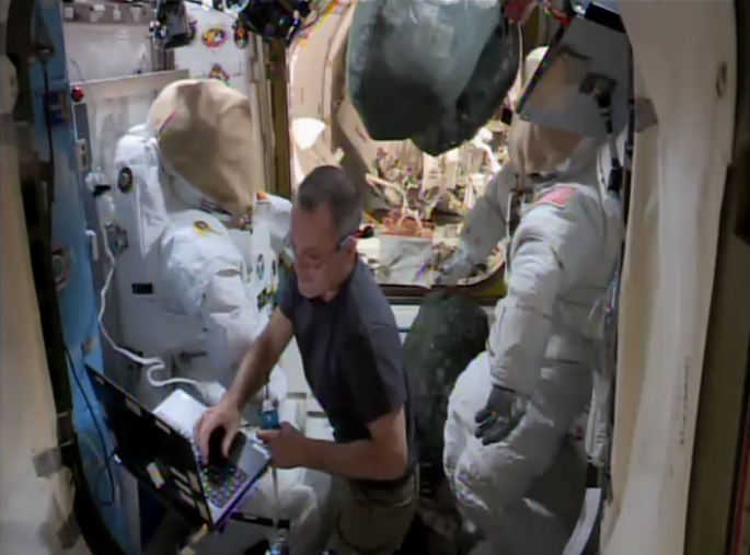 | Kate Rubins e Jeff Williams a bordo della ISS nel 2016. |