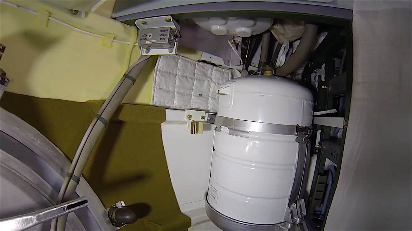 Se ho ben capito, il serbatoio cilindrico che si intravede in alto, quello con quattro sporgenze, fa parte della toilette di bordo, stando a queste info. Per comodità di consultazione riporto qui sotto le immagini separatamente:
