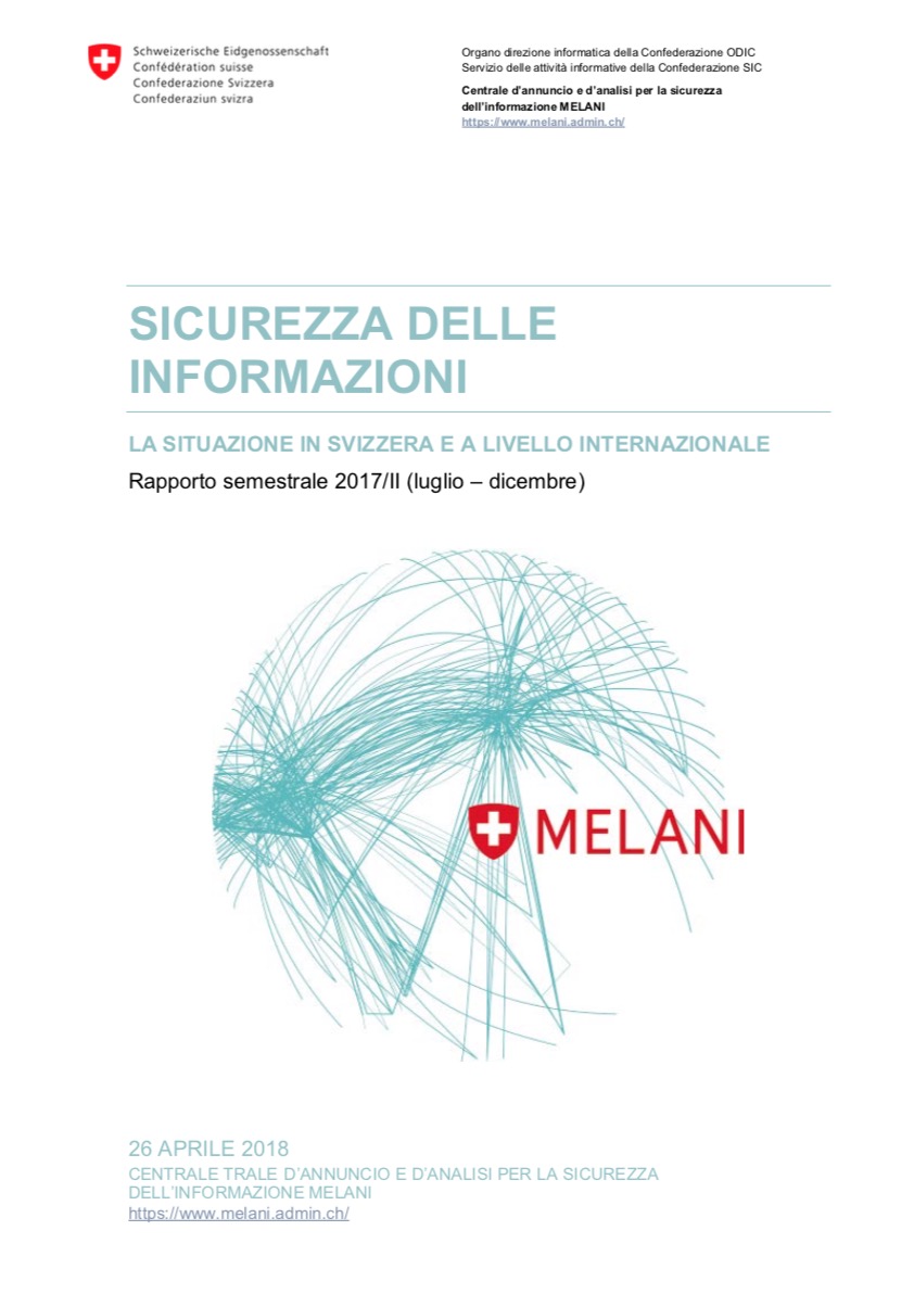 MELANI, la Centrale d’annuncio e d’analisi per la sicurezza dell’informazione del governo svizzero, ha pubblicato a fine aprile scorso il suo ventiseiesimo rapporto (PDF) sui principali incidenti informatici del secondo semestre 2017.