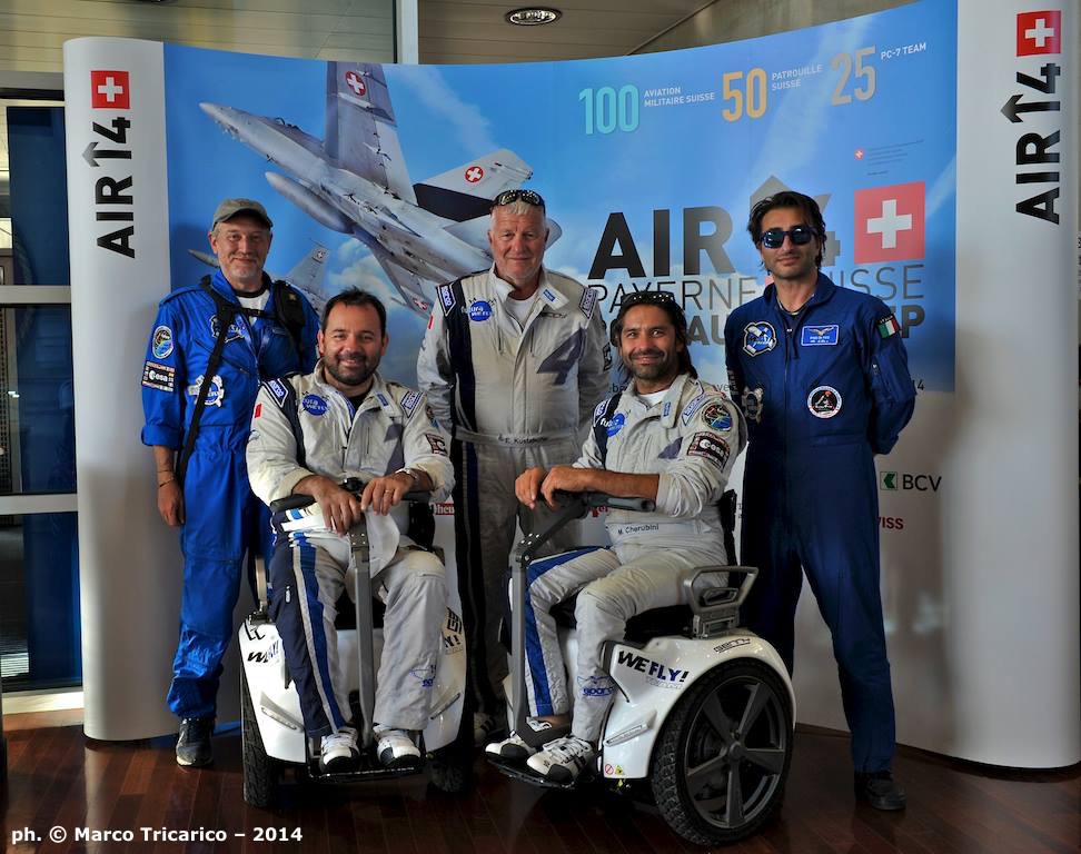 I piloti del WeFly! Team sono Alessandro Paleri (leader), tetraplegico dal 1987, Marco Cherubini (gregario sinistro), paraplegico dal 1995, ed Erich Kustascher (gregario destro), istruttore di volo. La bandiera è stata ideata dal designer Mirco Pecorari, titolare dell’Aircraft Studio design.