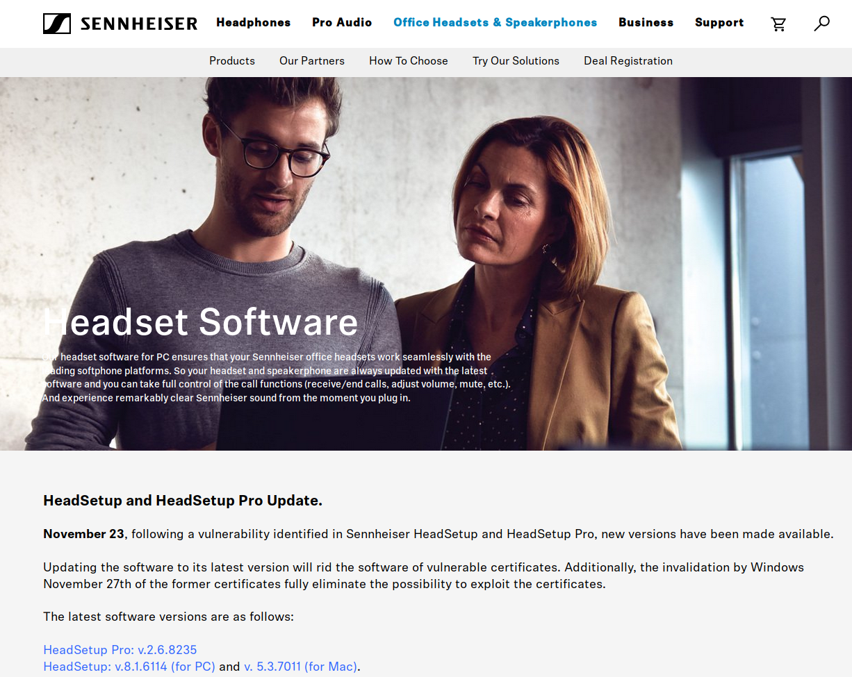 Sennheiser ha pubblicato un aggiornamento correttivo e Microsoft ha diffuso un aggiornamento che disabilita i certificati digitali erronei. Chi usa le cuffie di questa marca dovrebbe quindi aggiornare il software; chi ha installato il software in passato dovrebbe eliminare il certificato digitale fallato seguendo queste istruzioni per Mac e queste per PC Windows.