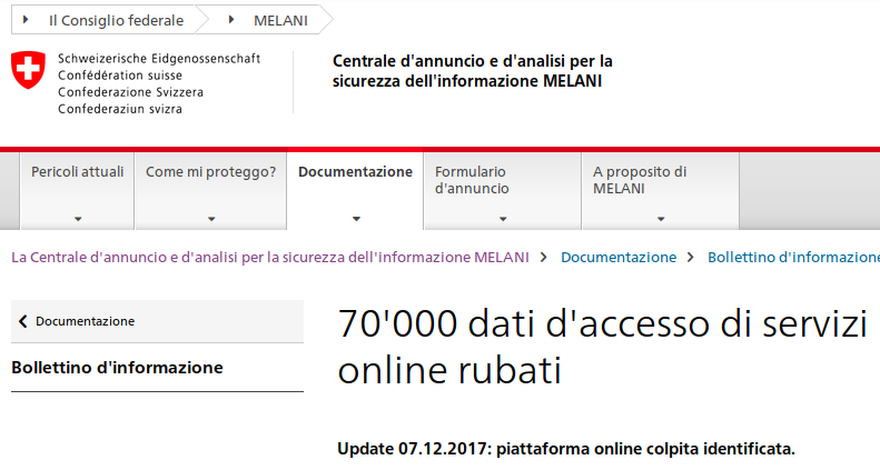 Chiunque abbia usato altrove la password che ha usato su quel sito deve presumere che la sua password non sia più un segreto e farebbe quindi bene a cambiarla dappertutto. MELANI ha messo a disposizione un minisito, Checktool.ch, nel quale si può immettere il proprio indirizzo di mail (non la password!) per sapere se si è coinvolti in questo furto di massa.