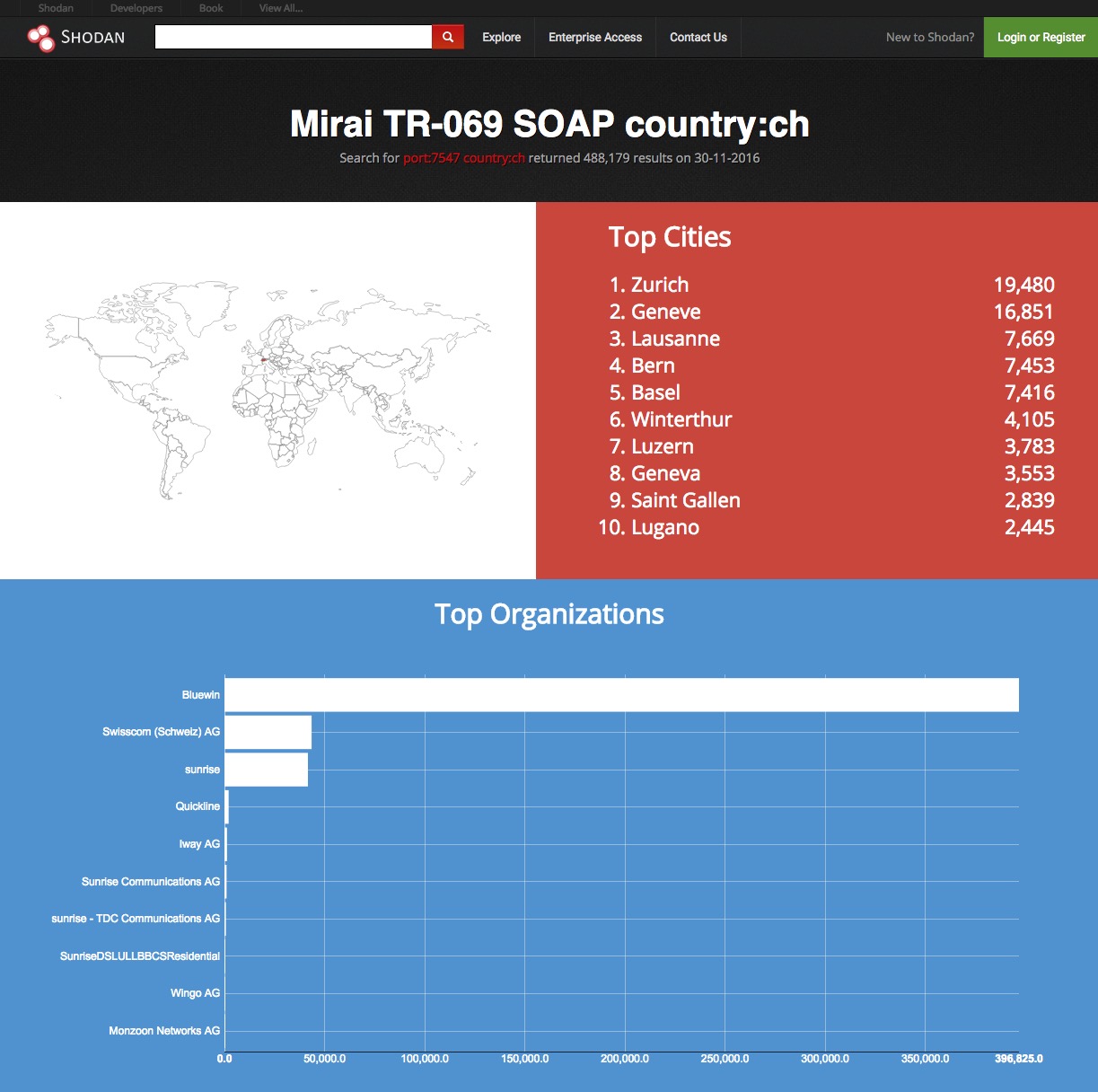 Secondo una ricerca fatta tramite Shodan da un lettore, Decio, in Svizzera ci sono quasi 500.000 dispositivi che hanno la porta 7547 aperta (e quindi sono probabilmente attaccabili) e più o meno altrettanti anche in Italia.