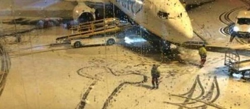 Antibufala mini: addetti dell’aeroporto di Dublino disegnano nella neve una forma... inconfondibile