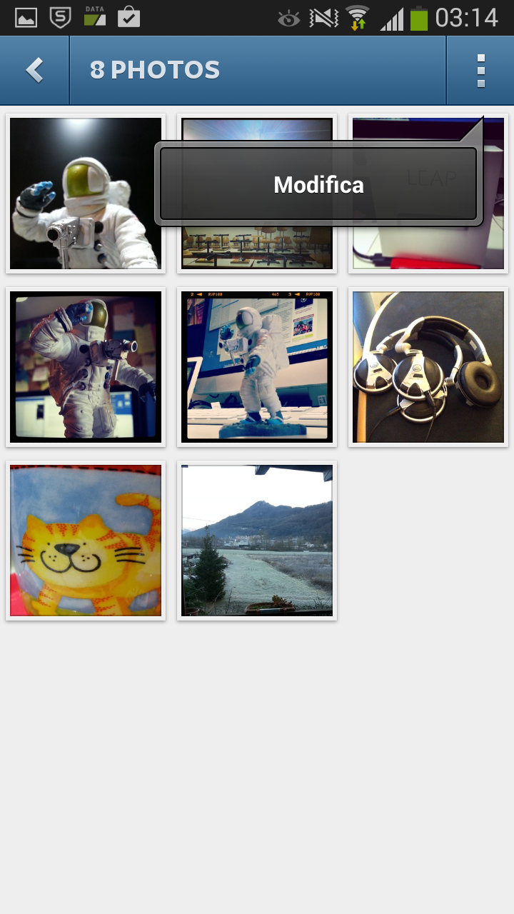 Questo fa comparire la galleria delle foto geolocalizzate: toccate il pulsante in alto a destra (quello con i tre puntini allineati verticalmente) e toccate la parola Modifica che compare.