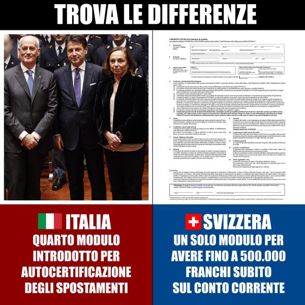 Non solo: come ha notato Bufale un tanto al Chilo, il team mediatico di Salvini ha addirittura messo a confronto il modulo di autodichiarazione per gli spostamenti in Italia con il “foglio” per il credito alle aziende svizzero. Non è un paragone fra mele e pere, ma fra burro e ferrovia: