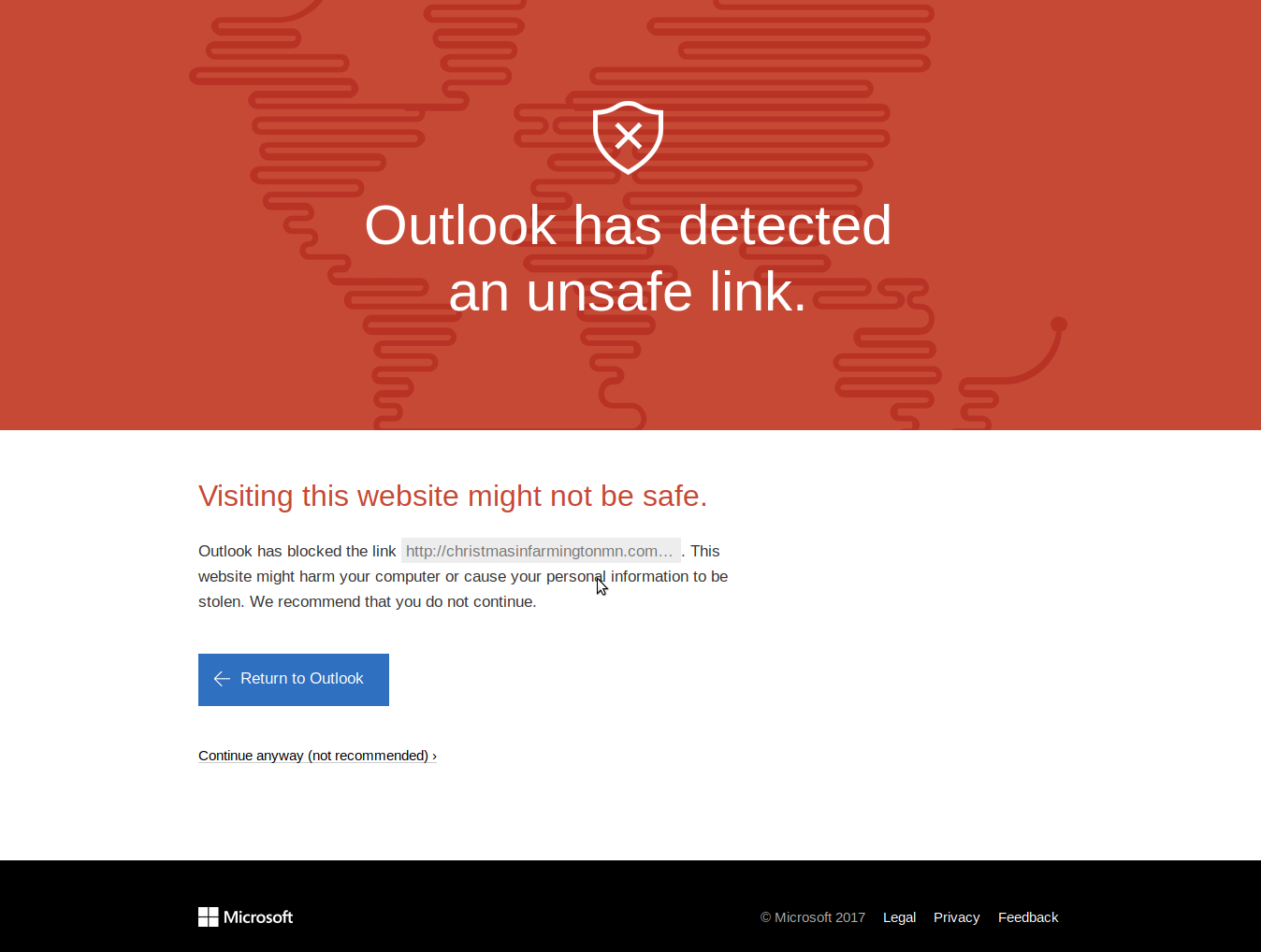 Cliccando sul link, Outlook avvisa che il link è pericoloso: