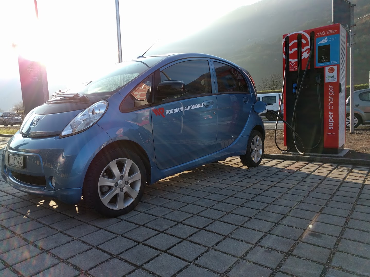 марта 21, 2018 23:45Sto man mano esplorando i limiti di un’auto elettrica ad autonomia limitata come la mia Peugeot iOn usata (90 km reali, secondo il computer di bordo). Visto il successo dell’avventuretta precedente a una distanza senza ritorno garantito, ho proposto alla Dama del Maniero una sfida leggermente più spinta: andare in un luogo che possiamo raggiungere soltanto facendo tappa per caricare e dove c’è una sola colonnina di ricarica, dalla quale dobbiamo dipendere per poter tornare a casa. E fare tutto questo non per diletto, ma per lavoro, con orari di arrivo da rispettare.Il luogo è Cevio, dove ho tre lezioni di sicurezza e privacy per gli studenti della Scuola Media locale. Cevio dista dal Maniero Digitale 72 chilometri, per metà autostradali. Ci potremmo arrivare, ma con margini ridottissimi, e fa freddo, per cui servirà un po’ di riscaldamento, che intacca l’autonomia. Troppo rischioso. Girare con soli 16 kWh di batteria richiede una certa arte nel pianificare e bilanciare le esigenze.