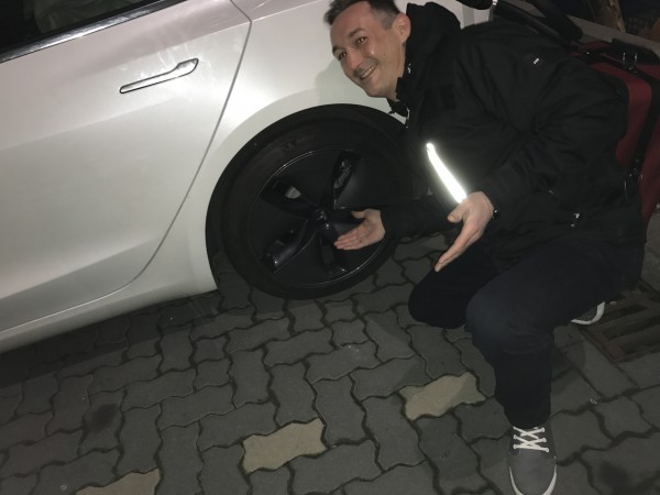 Se ho tradotto bene (il mio tedesco zoppica), la segnalazione dice che l’auto aveva targhe rosse, era guidata da americani dipendenti di Tesla che stavano viaggiando in tutta Europa, forse per fare marketing virale; dice inoltre che il conducente ha chiesto di non fare fotografie ma ha scattato questa foto dell‘utente segnalatore accanto all’auto, che aveva nel bagagliaio un grosso dispositivo usato per collegarsi al Supercharger, dato che il connettore americano è differente da quello europeo. Secondo Electrek, il dispositivo sarebbe un adattatore Mennekes Type 2/Tesla.