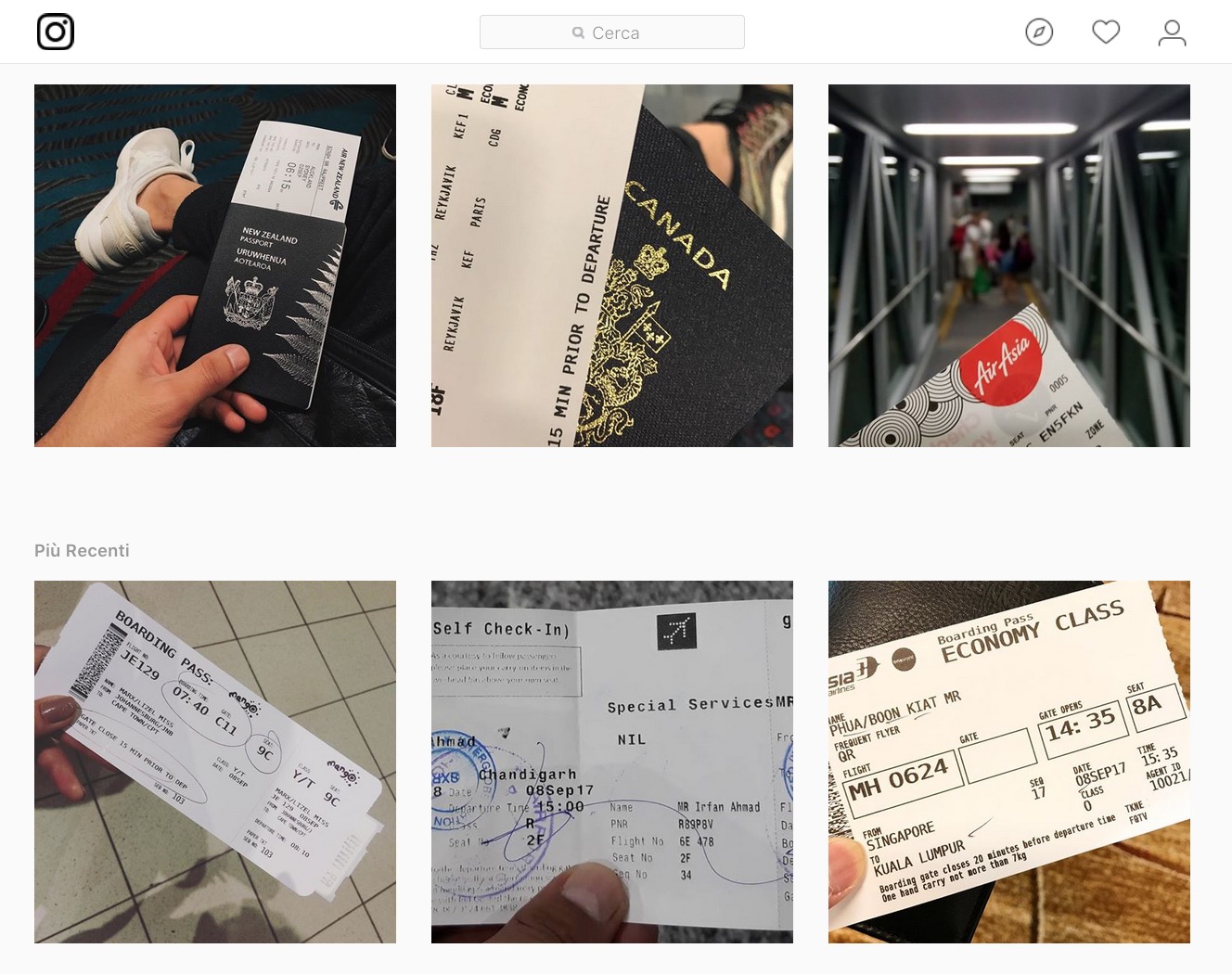 Capita spesso di vedere gli amici che festeggiano pubblicamente la partenza per un viaggio o la partecipazione a un concerto mettendo sui social network le foto dei propri biglietti. Basta cercare su Instagram parole chiave come “boarding pass” o “concert ticket” per vederne decine di migliaia di esempi come quello qui accanto.