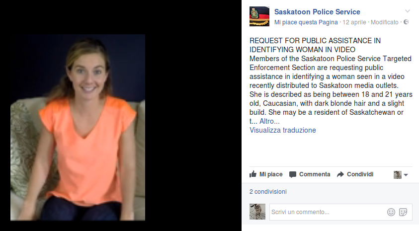 июля 28, 2017 3:34Avete visto il film The Circle? C’è una scena nella quale il social network immaginario del film, una sorta di Facebook, viene usato per localizzare una criminale che la giustizia ordinaria non riusciva a trovare. Viene diffusa la sua foto e gli utenti, sparsi ovunque nel mondo, vanno a caccia finché trovano la donna e la fanno arrestare. Spettacolare e inquietante, ma meno esagerato di quello che si potrebbe pensare.Alcuni mesi fa la polizia della provincia canadese dello Saskatchewan ha infatti usato lo stesso sistema per identificare e localizzare una donna che stava cercando: ha messo su Facebook una foto della donna e ha sfidato gli utenti a partecipare alla sua ricerca, presentandola come una sorta di gioco. Ha funzionato: la giovane è stata riconosciuta dal fratello, che vive in North Carolina e che ha avvisato la polizia canadese e la sorella. Ed è qui che la storia prende una piega bizzarra.