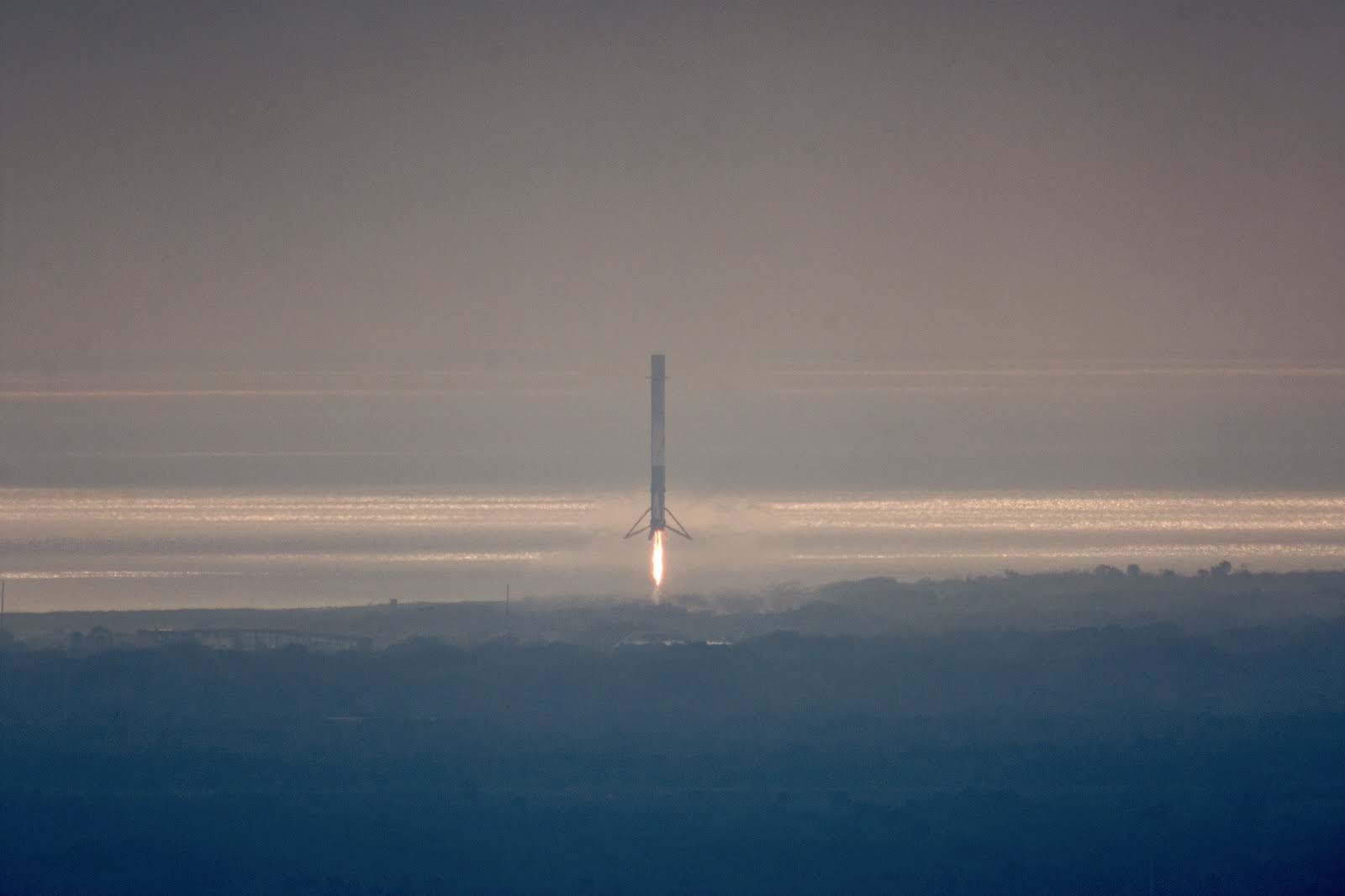 Nove minuti dopo il lancio, il primo stadio del Falcon 9 è rientrato ed è atterrato verticalmente con precisione sull’apposita piazzola di atterraggio di SpaceX presso la base militare di Cape Canaveral, a pochi chilometri di distanza dal punto di decollo. Per SpaceX è il secondo atterraggio su terraferma in assoluto e il primo su terraferma diurno. Spettacolare.