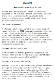 мая 27, 2016 6:32Brutta, bruttissima figura per LinkedIn. Sul mercato nero sono in vendita gli indirizzi di mail e le password di 117 milioni (c'è chi dice 164 milioni) di suoi utenti, che sono stati rubati all’azienda. Il guaio è che il furto risale a quattro anni fa ma viene annunciato in dettaglio soltanto adesso: prima si pensava che il danno fosse circoscritto (si fa per dire) a circa 6,5 milioni di persone.Ciliegina sulla torta, sono coinvolto personalmente: fra gli indirizzi di mail violati ce n’è uno dei miei, secondo HaveIBeenPwned, noto sito che avvisa gli utenti iscritti quando uno dei loro account è oggetto di furto di credenziali.
