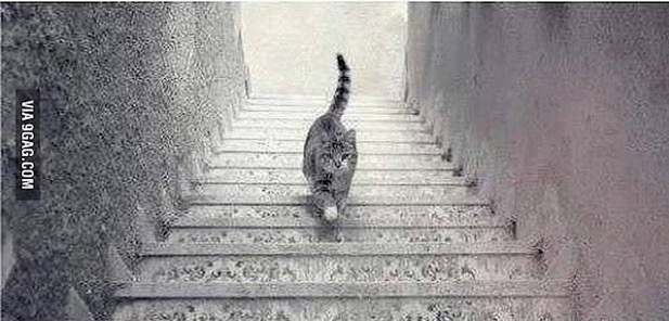 апреля 9, 2015 22:36Due righe veloci sul nuovo tormentone che cerca di emulare il successo commerciale del vestito bianco e oro o nero e blu: è vero che l'immagine del gatto che percorre le scale si presta ad essere interpretata sia come una salita sia come una discesa, ma solo a uno sguardo superficiale.Osservando i dettagli, si nota che le scale hanno uno spigolo che sporge, cosa che ha senso solo se la sporgenza è sulla pedata della scala, non sull'alzata. Inoltre i gradini sono decorati sulla faccia visibile, ed è improbabile che questa decorazione sia sulla pedata, per cui quella che si vede è l'alzata. Infine i battiscopa laterali sono disposti correttamente solo se stiamo guardando la scala dal basso. Anche la posa del gatto è indicativa di una discesa.