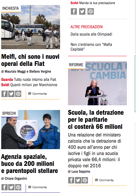 | Come si presentava la notizia questa mattina sul sito web del settimanale L'Espresso. La stessa foto appariva in testa all'articolo stesso. |
