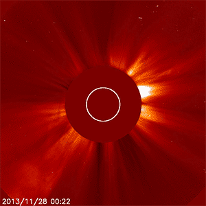 Poche ore fa la cometa ISON ha raggiunto la distanza minima dal Sole (il circolo bianco al centro di quest'animazione) e per un po' si è temuto che si fosse disintegrata. Ma le immagini più recenti sembrano mostrare che qualcosa è rimasto. L'animazione, davvero spettacolare, viene dal blog di Emily Lakdawalla su Planetary.org.