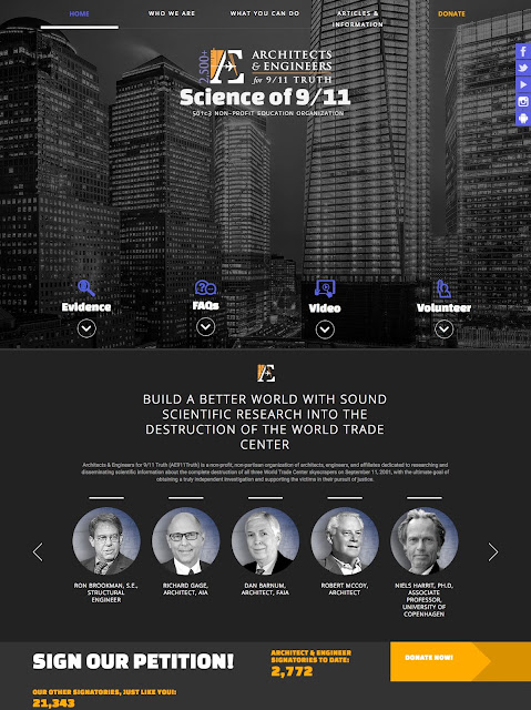 Il sito dell’associazione è www.ae911truth.org. Questo è uno screenshot della sua pagina iniziale, che vanta ben 2772 architetti e ingegneri firmatari: