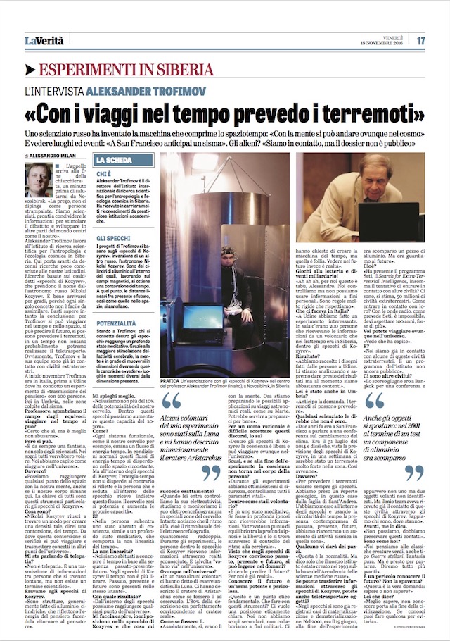 L’articolo intervista tale Aleksander Trofimov, descritto come “direttore dell’Istituto internazionale di ricerca scientifica per l’antropologia e l’ecologia cosmica in Siberia”. No, non chiedemi cos’è l’antropologia cosmica.
